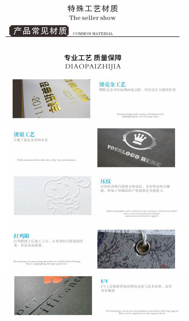 印刷紙張:銅版紙、雙膠紙、啞粉紙、珠光紙、其他藝術(shù)紙(藝術(shù)紙種類較多我們可以免費提供紙樣供您選擇)