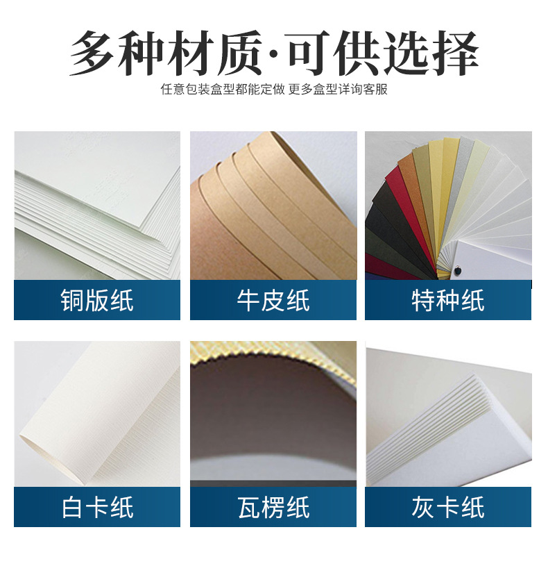 印刷紙張:銅版紙、雙膠紙、啞粉紙、珠光紙、其他藝術(shù)紙(藝術(shù)紙種類較多我們可以免費(fèi)提供紙樣供您選擇)